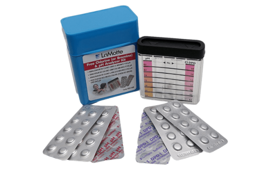 Kit para la determinación de Cloro Libre, rango: 0.2-3.0 ppm, escala: 0.2, 0.5, 0.8, 1.0, 1.5, 2.0, 3.0 y pH rango: 6.5-8.5 pH, escala: 6.5, 6.8, 7.0, 7.2, 7.6, 8.2, 8.5. incluye 30 tabletas reactivas para cada variable y comprador cloro residual y pH.