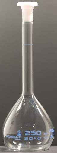 Matraz volumétrico de vidrio clase A aforado 250 ml con tapón de plástico