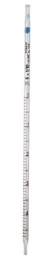 Pipeta de vidrio científica serológica, 5 ml, Clase AS , rápido vaciado. división: 0.05 ml, Tolerancia: 0.03 ml, Velocidad de vaciado: 7 - 13 seg. cero encima,